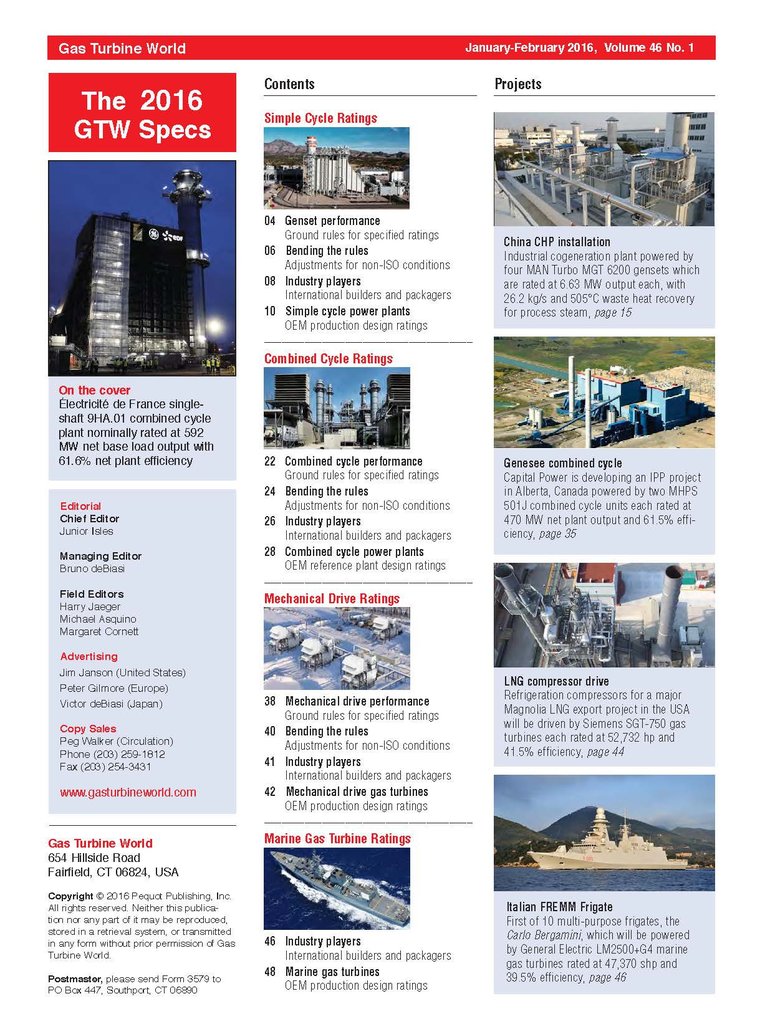 Organized into separate reference sections to provide application-specific data for simple cycle, combined cycle, mechanical drive and marine operation. Listings are searchable by OEM name and model designation.